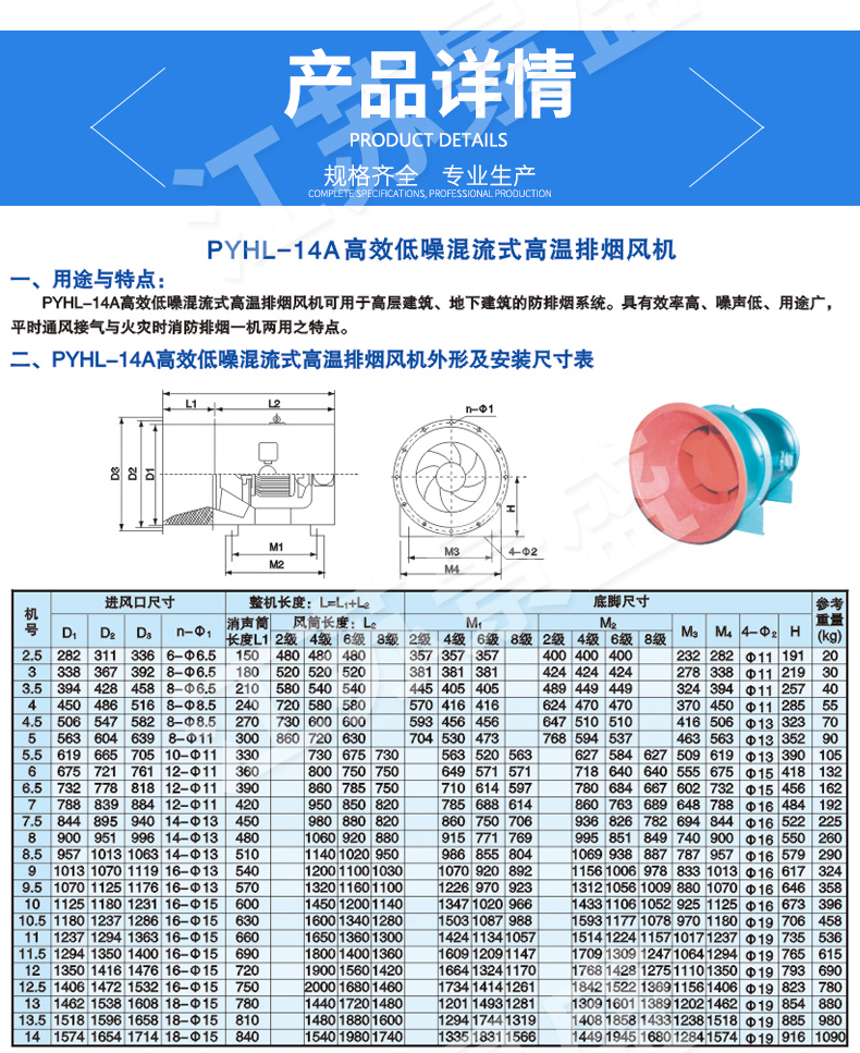 > PYHL-14A混流式高溫排煙風(fēng)機(jī)